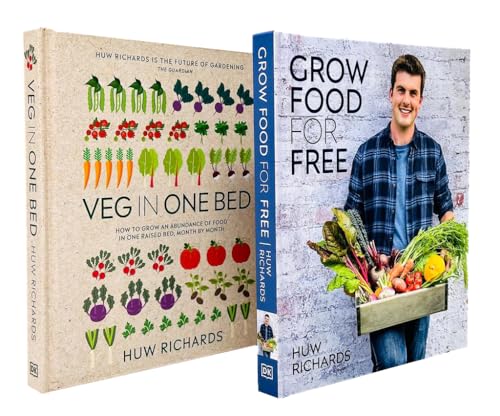 Grow Food for Free & Veg in One Bed By Huw Richards 2 Books Collection Set