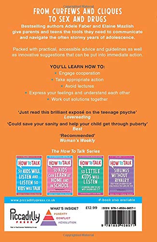 I had the book for younger children ‘how to talk to children will listen…..’ and found it so useful. I was not disappointed with this one either. I find the book gives me ways of keeping channels of communication flowing between parents & teens and continues to help us understand each other. I bought the book a few years ago, my son is now 16 & my daughter 14 and I can honestly say they talk to me and listen to what I might have to say. We’re not perfect or without our difficulties but I find the book gives us ways of hearing each other so we can negotiate ways of existing together happily. I regularly recommend this book & the one for younger children, to friends.