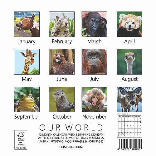 - PERFECT CALENDAR 2024 FOR ANIMAL LOVERS: Our World’s animal selfie 2024 Wall Calendar makes the perfect gift for any animal lover. Get your animal calendar today and enjoy this funny calendar every day