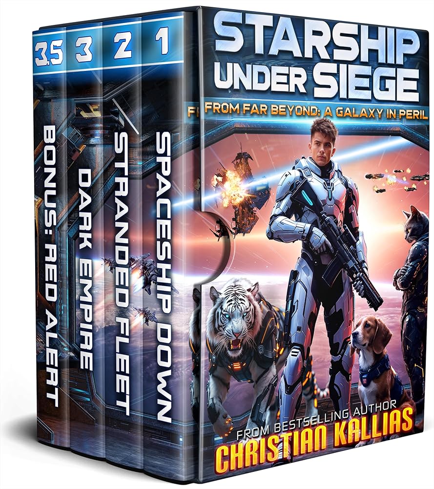 The Starship Under Siege Box Set contains the first three books (Trilogy) adrenaline-fueled From Far Beyond novels, and includes the riveting bonus short story: Red Alert. If the sheer joy of diving into movies like Ready Player One and The Last Starfighter left you spellbound, then brace yourself, because you’re in for an absolute whirlwind of cosmic escapades with our hero, Kevin, and his faithful Beagle, Boomer, as they navigate across galaxies in high-stakes interstellar combat.