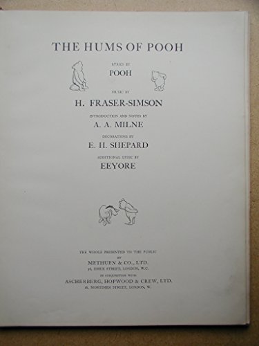 Physical description: 67 pages: illustrations; 31 cm. Subjects: Winnie-the-Pooh (Fictitious character); Juvenile poetry. Winnie-the-Pooh (Fictitious character); Poetry. Milne, A. A. (Alan Alexander) 1882-1956; Musical settings. Milne, A. A. (Alan Alexander) 1882-1956. Children’s stories, English. Other names: Shepard, Ernest H. (Ernest Howard) 1879-1976. Cox and Wyman [printer]. Genre: Fiction. Illustrated. Musical settings.